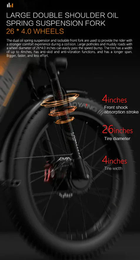 Tires ✅ 26×4.0″ fat tires ❌ Narrow tires